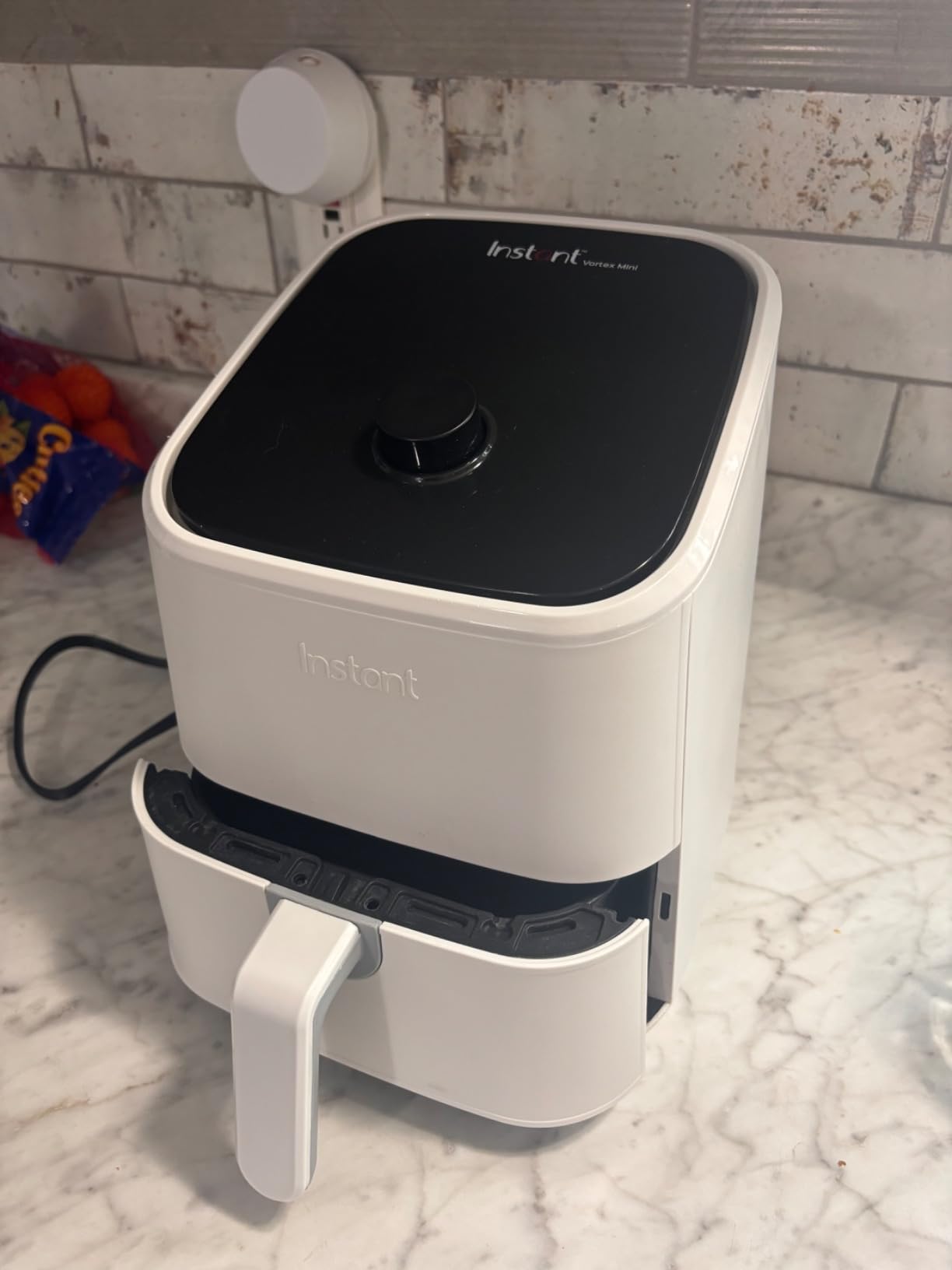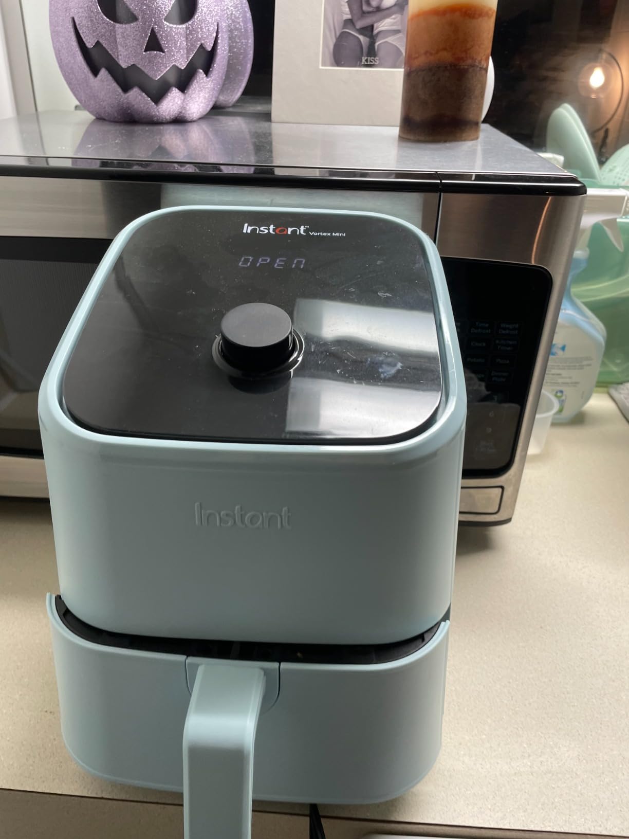 Compré esta freidora de aire Instant Vortex 2QT Mini para mi hija que está en la universidad, y ha sido una herramienta increíble para facilitar su alimentación. Este pequeño electrodoméstico le ha permitido preparar comidas rápidas, fáciles y saludables sin necesidad de usar una cocina grande o muchos utensilios.Ventajas:Tamaño compacto: Es perfecta para su dormitorio. No ocupa mucho espacio y es muy ligera, lo que la hace fácil de mover o almacenar.Versatilidad: Aunque es pequeña, tiene funciones que le permiten no solo freír sin aceite, sino también recalentar, hornear y asar. Es ideal para hacer comidas rápidas como papas fritas, verduras asadas o incluso recalentar sobras sin perder calidad.Rápida y eficiente: Los tiempos de cocción son cortos, lo que es perfecto para estudiantes que no tienen mucho tiempo para cocinar entre clases.Fácil de limpiar: La bandeja es apta para lavavajillas, lo que ahorra mucho tiempo y esfuerzo.Recetas incluidas en la aplicación: La opción de más de 100 recetas disponibles a través de la aplicación es una excelente manera de darle nuevas ideas para sus comidas, y hasta ahora ha probado varias que le han encantado.Contras:Capacidad limitada: Si bien es perfecta para una persona o porciones pequeñas, puede que no sea suficiente si necesitas cocinar para varias personas a la vez.En resumen, el Instant Vortex 2QT Mini Air Fryer ha sido una excelente compra para mi hija. Es eficiente, fácil de usar y limpiar, y le ha facilitado muchísimo la preparación de sus comidas. Recomendaría este producto a cualquier estudiante universitario o a cualquier persona que necesite una freidora de aire compacta para espacios pequeños.