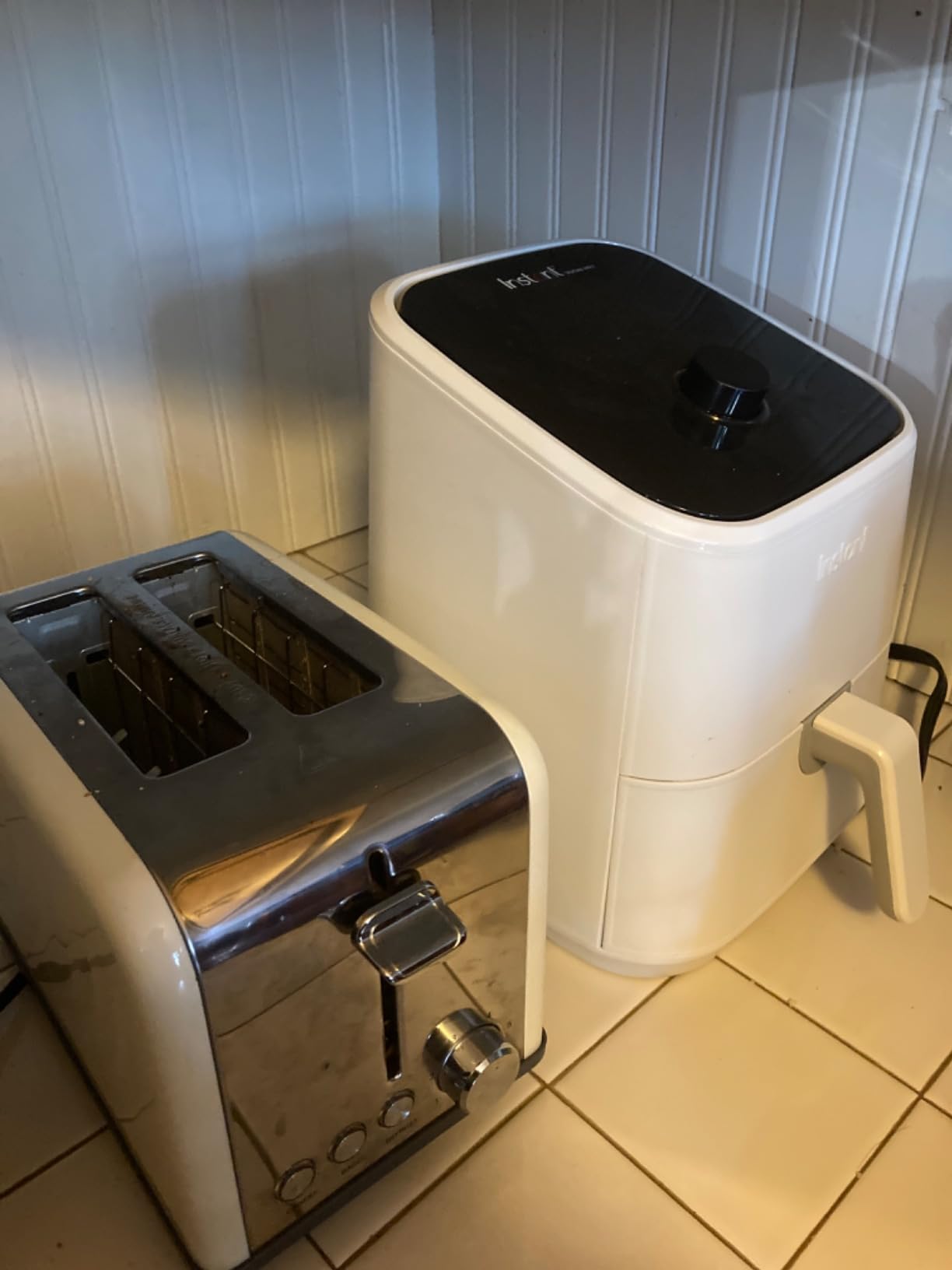 This replaced an older big, black air fryer that we still love and use the heck out of, but took up too much counter space. This air fryer is so teeny tiny that it’s almost cute, but don’t let that fool you. I’m thoroughly impressed. It cooks better than the air fryer we’ve been using for years, and has better controls and built in features. It’s the perfect size for 1-2 people. It would be perfect to take to the office or have in a dorm room. The other criterion for my selection of this was that it’s white. Black and stainless steel appliances are jarringly out of place in my original 1929 kitchen. This air fryer visually blends in much better than the old one. Now we can store the old, big air fryer out of sight, and haul it out when we’re intoxicated and need to heat up a whole bag of tots immediately.