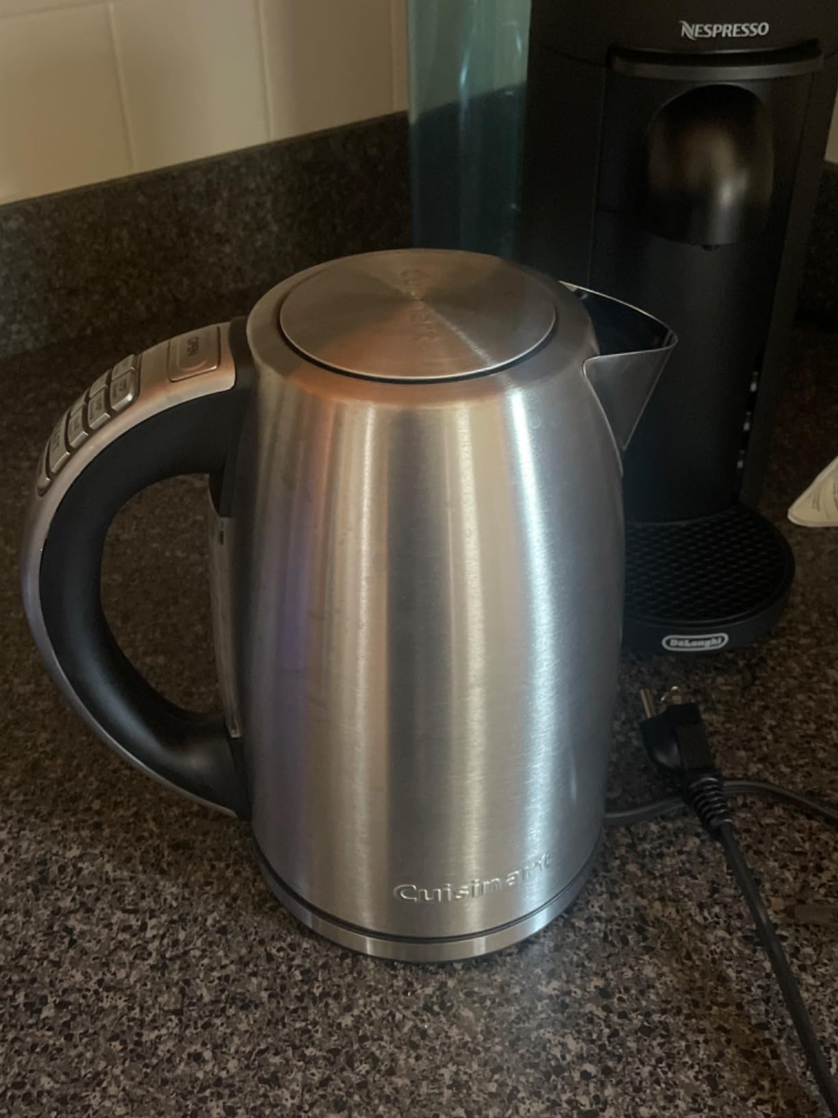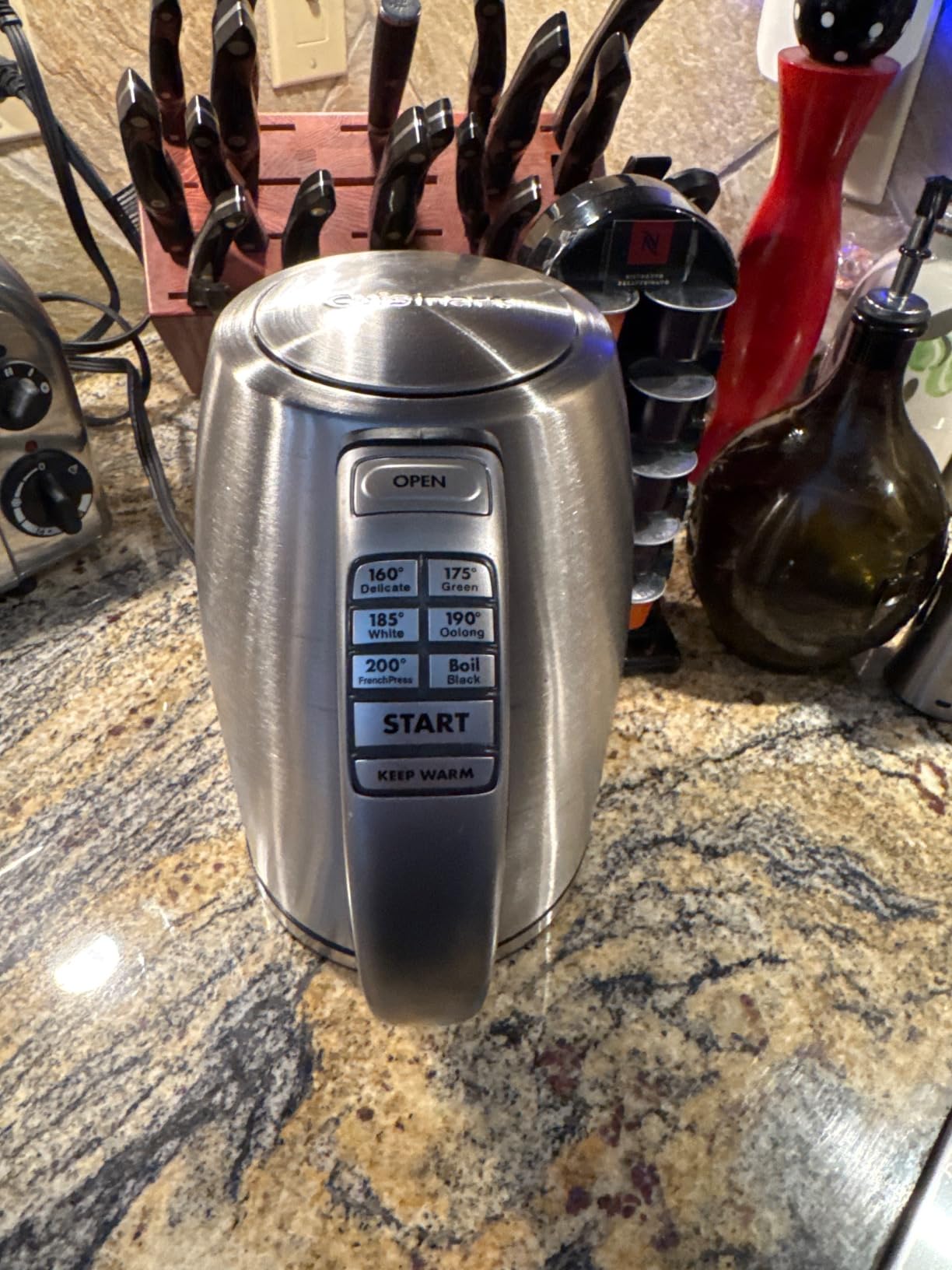 I love this electric kettle, I use it every day for boiling water. Great temperature settings for different types of tea. I’ve had lots of these kettles over the years.Russell Hobbs, Chief Man, & Capressio. This is by far the best one.