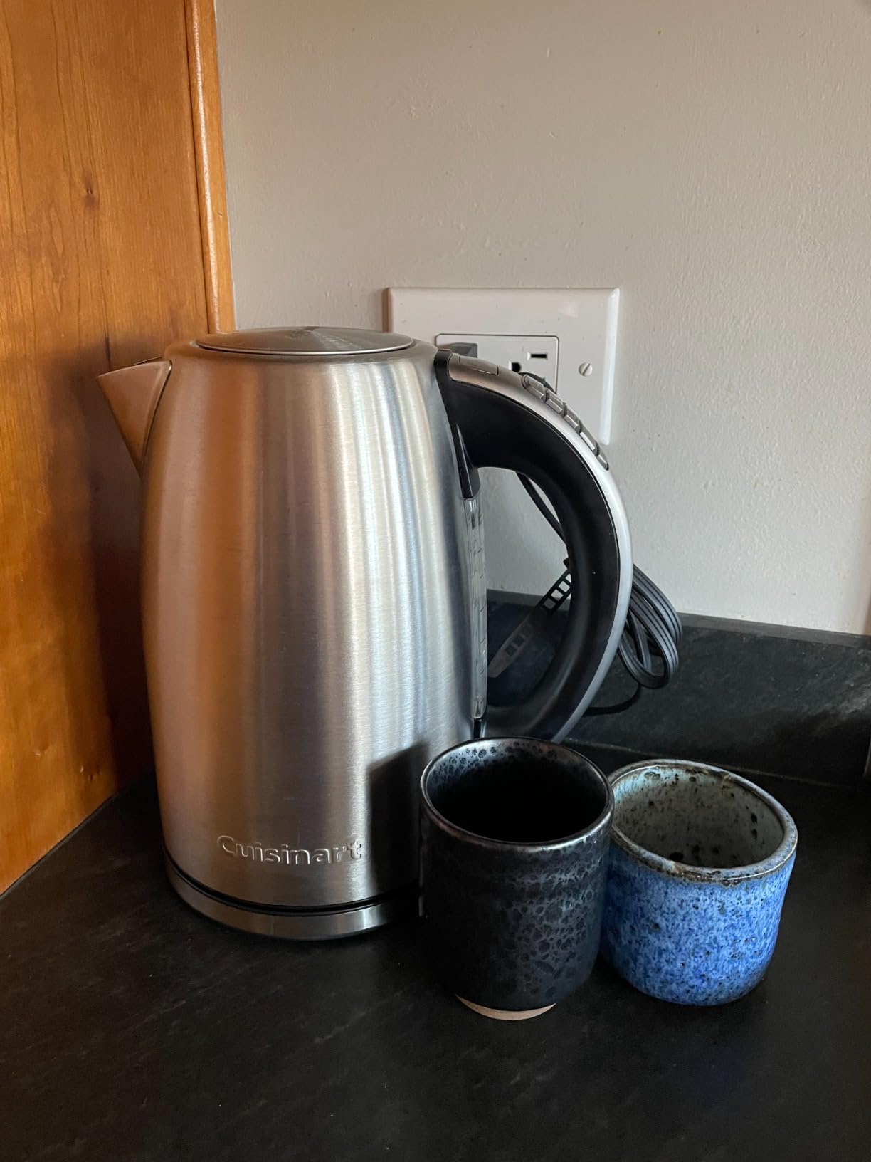 We were using a beautiful old mid-century modern kettle with a wooden handle for years but it didn't have a whistle so I kept leaving it on the stove and my husband would yell at me that I was going to burn the house down or at minimum ruin the kettle. My sister had an electric kettle but it is ugly and a space hog. This one is as elegant-looking as a kitchen appliance can be. My husband drinks a lot of different types of teas so he likes that he can set the temperature. And it shuts itself off, so my nerves are a little more relaxed.
