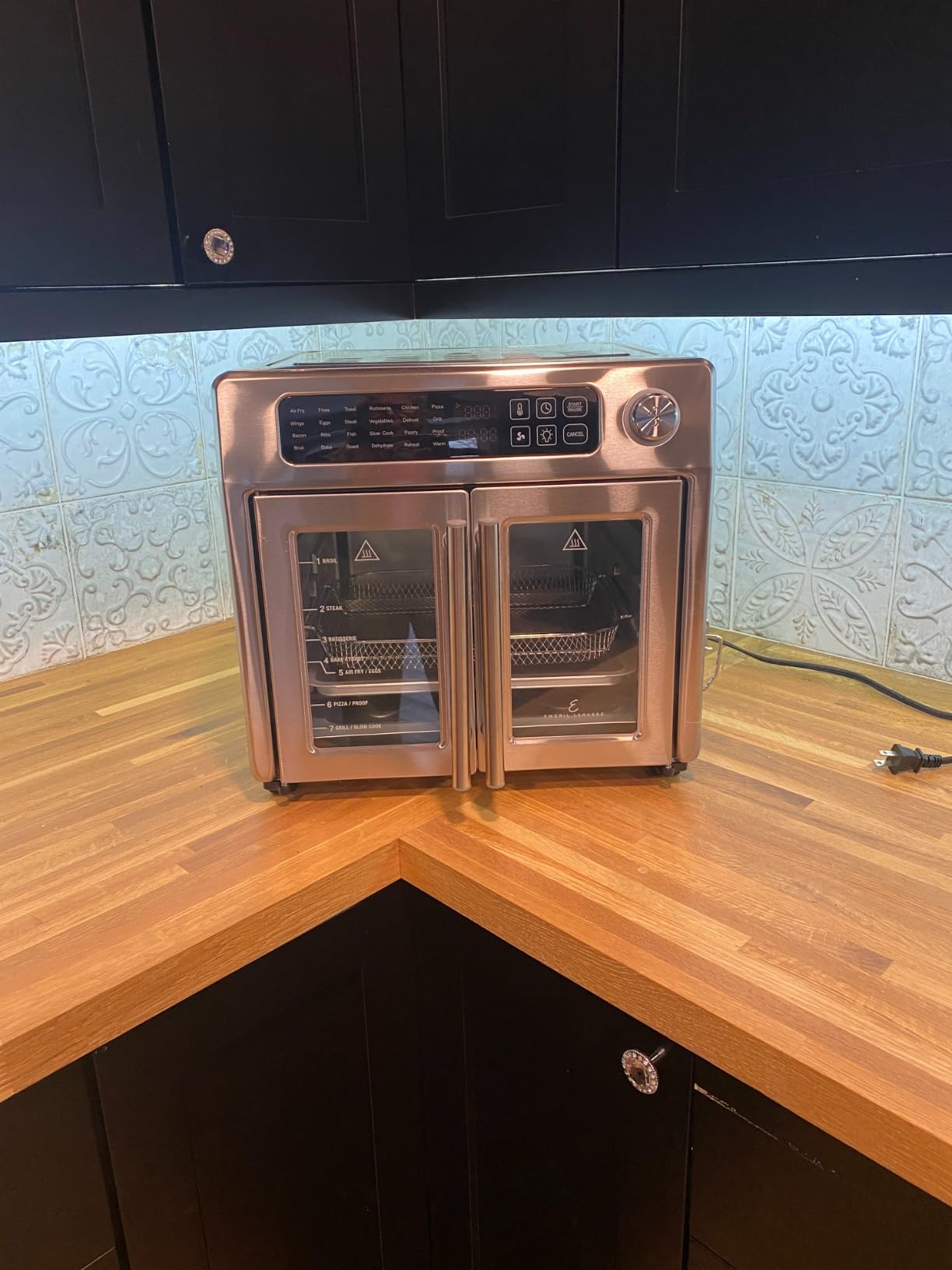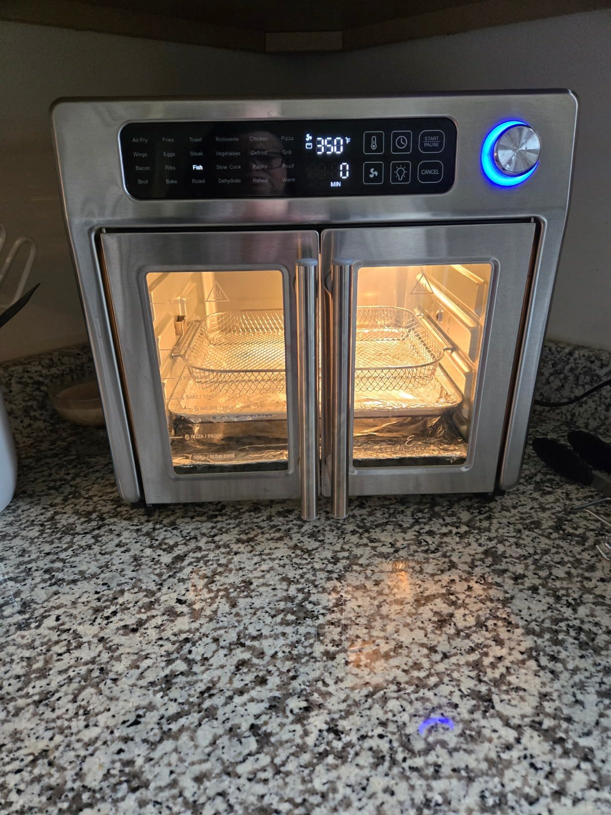 Special Feature Automatic Shut-Off, Programmable Product Dimensions 16.9"D x 15.8"W x 14.8"H Color Silver Capacity 26 Quarts Material Stainless Steel Recommended Uses For Product Roast, Broil, Bake, Reheat, Dehydrate Output Wattage 1700 Watts Item Weight 26.5 Pounds Brand Emeril Lagasse Wattage 1700 watts Voltage 120 Volts Control Method Touch Model Name Extra Large 26 QT French Door Air Fryer Has Nonstick Coating No Inner Material Stainless Steel Outer Material Stainless Steel Controller Type Touchscreen Max Temperature Setting 500 Degrees Fahrenheit UPC 752356835682 Manufacturer Emeril Lagasse Item Weight 26.5 pounds ASIN B09B7SB46R Country of Origin China Item model number 4-00675-02 Customer Reviews