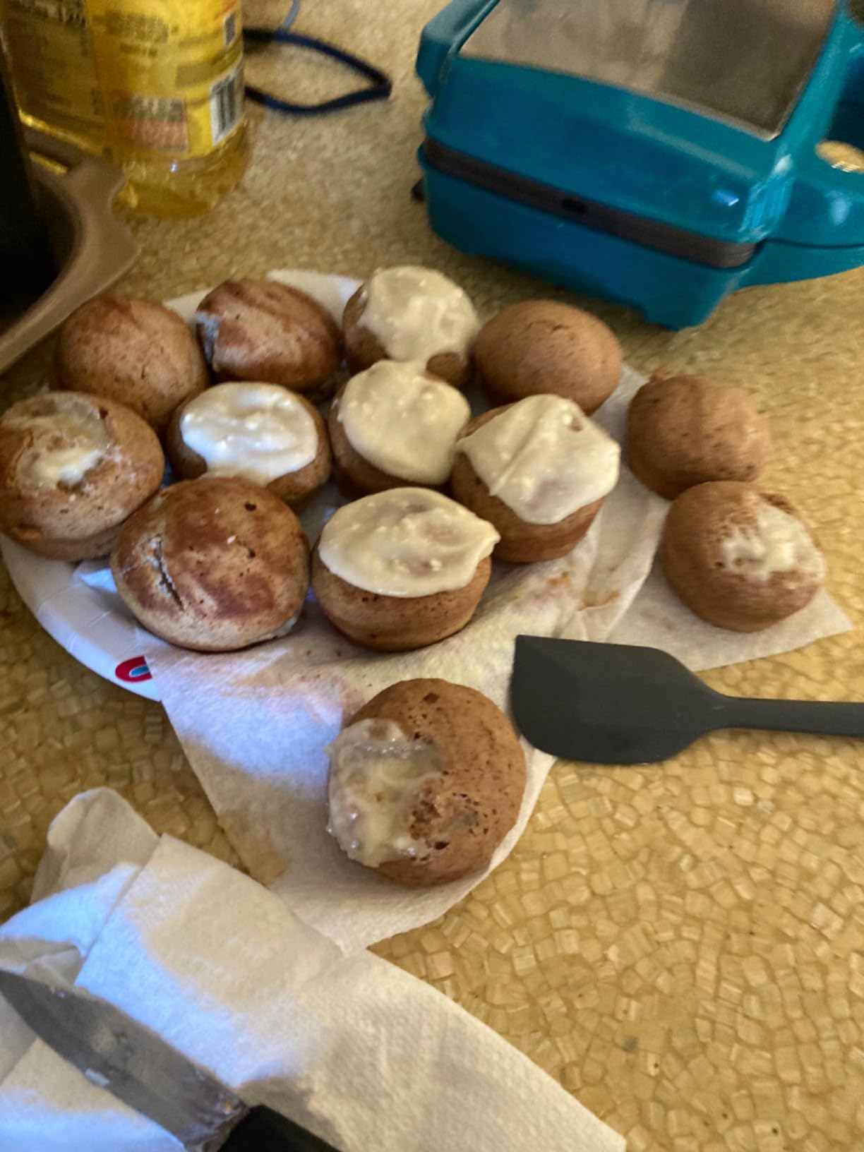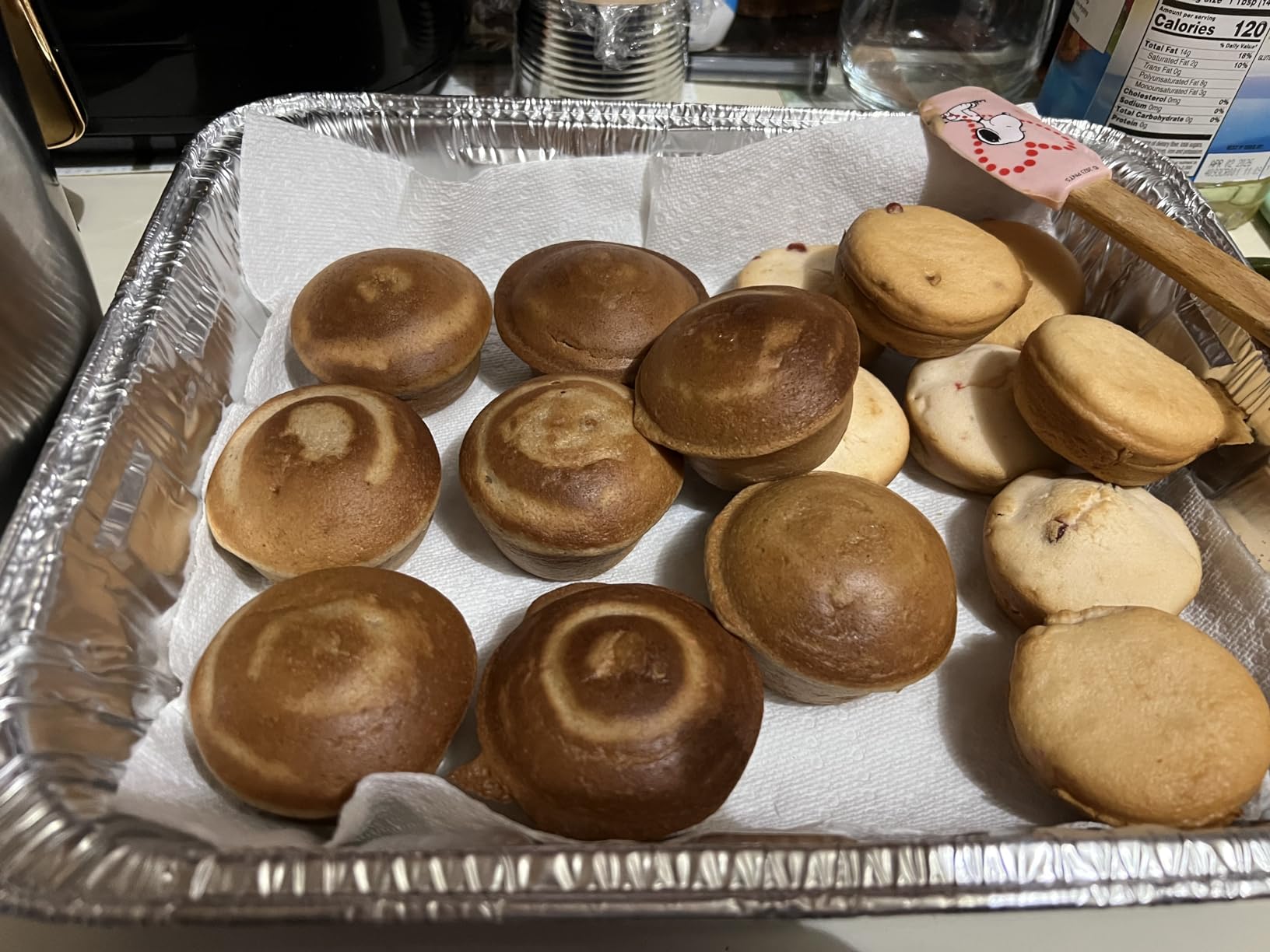 As I have said before, it’s not easy to do things after a stroke and my love of cooking I thought was lost. Enter these mini quick working appliances. I can do these one handed. Some had filling in or placed on top. Darker ones has filling in. I used this a few times and am going to make muffins for a funeral luncheon. It’s easy to us, clean, and store. I absolutely love it. If I can do this with one hand I know you definitely could. By the way. Some of the muffins never made it to the pic. Eaten right away as soon as cool👍 if you buy one remember it’s not an oven but a bit faster and not heavy. Got to say I love,love it. Can you tell? 😀hope you enjoy yours as much as I do. I’m getting more independent gradually and back to some cooking. Thanks very much.
