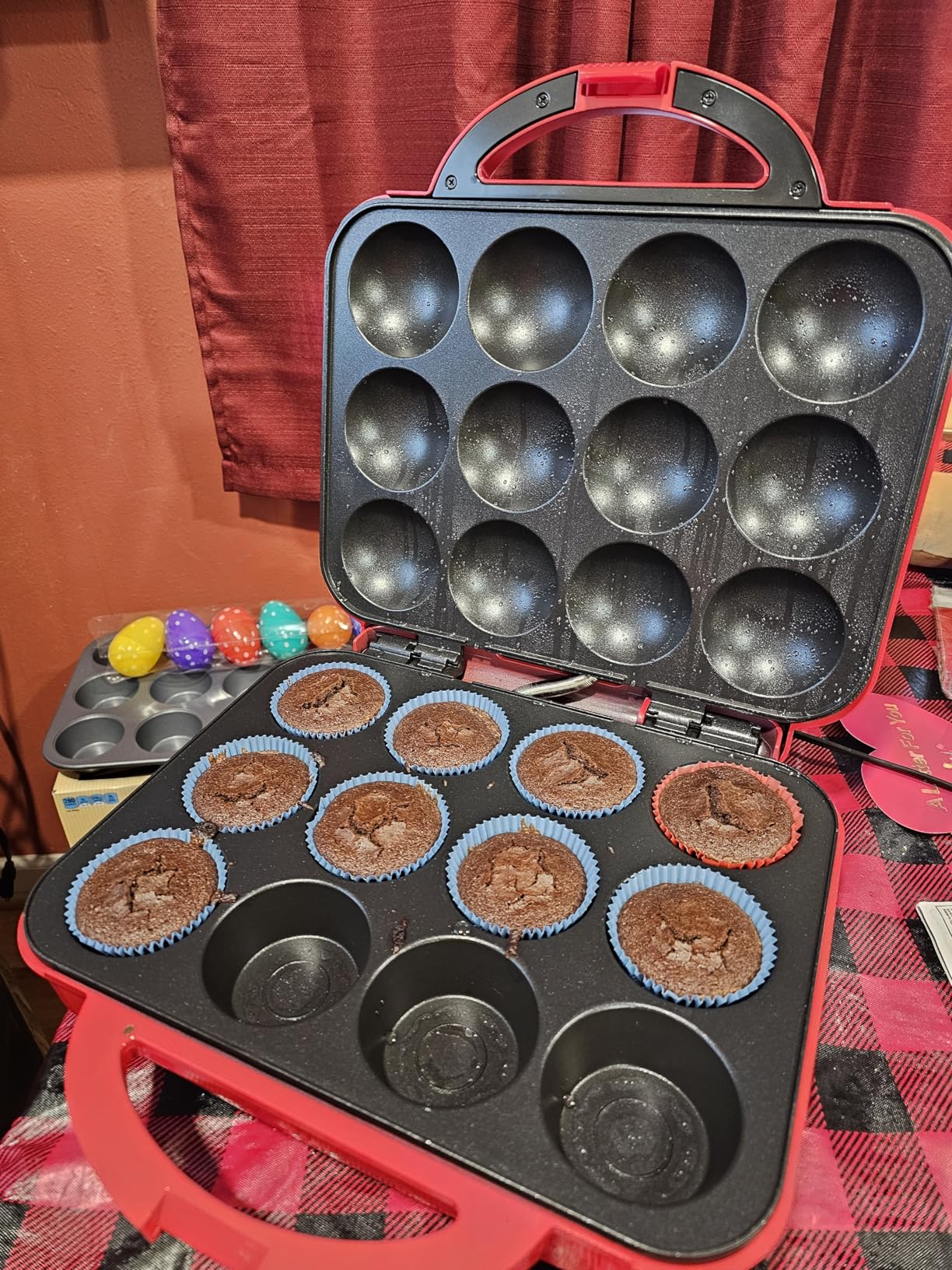 This muffin maker is a hit. If they could make one with a timer/auto shut off.When the muffins are done, unplug let muffins cool about 1-2 minutes with top up. The muffins pop out with ease.