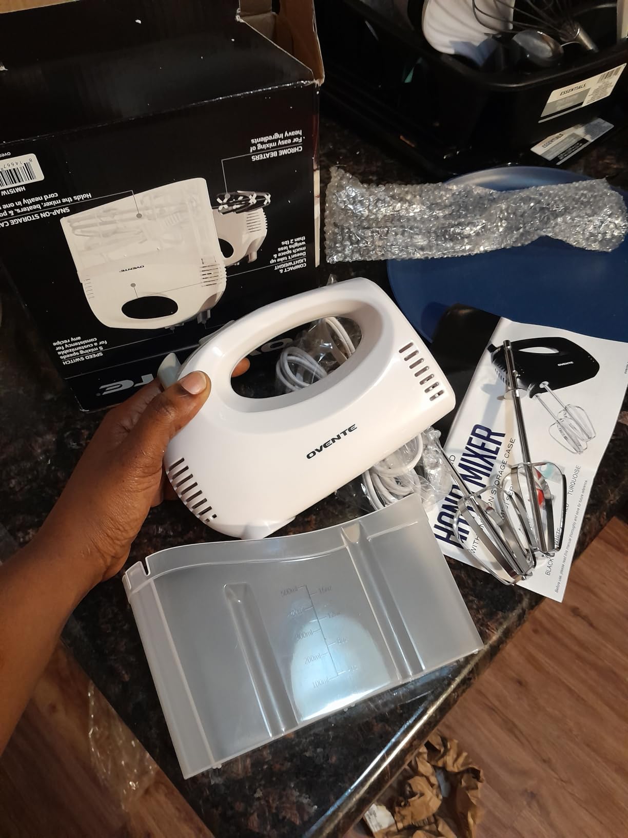 Brand OVENTE Color Black Product Dimensions 8.3"D x 3.2"W x 7"H Blade Material Stainless Steel Special Feature Adjustable Speed Control Capacity 1.8 Pounds Controls Type Push Button Item Weight 1.8 Pounds Model Name HM151 Is Dishwasher Safe No - ADJUSTABLE SPEEDS – This hand mixer has 5 mixing speeds from 1 (Lowest) to 5 (Highest) for a perfectly customizable texture and consistency for any recipe you desire.
